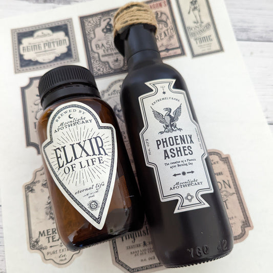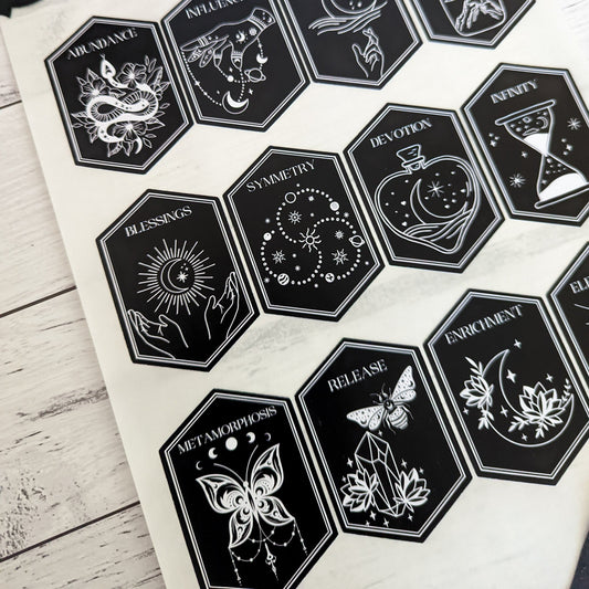 Wiccan Mystic Jar Labels x 12 - Black and White, Halloween DIY