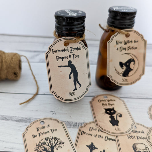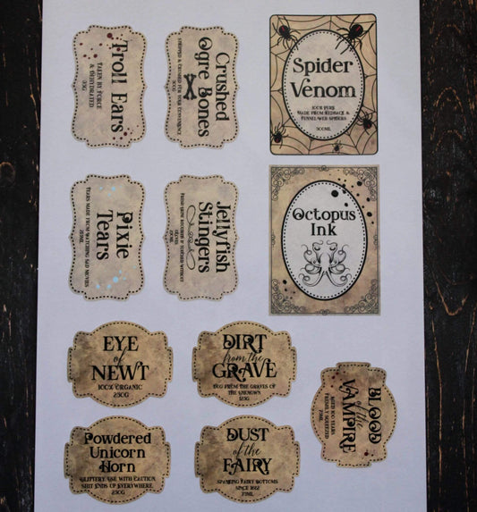 Witch Kitchen Labels x 12 stickers, DIY Halloween Labels