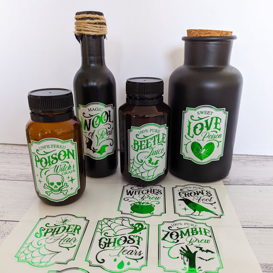 Foil DIY Halloween Jar Labels - Set of 11 Stickers