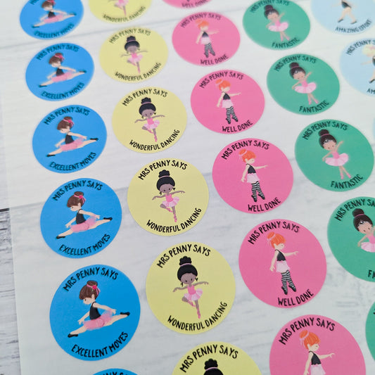 Personalised Ballet Dance Teacher Stickers - Set of 48 Stickers