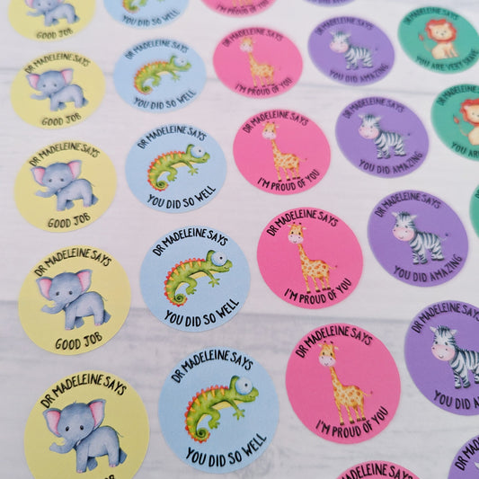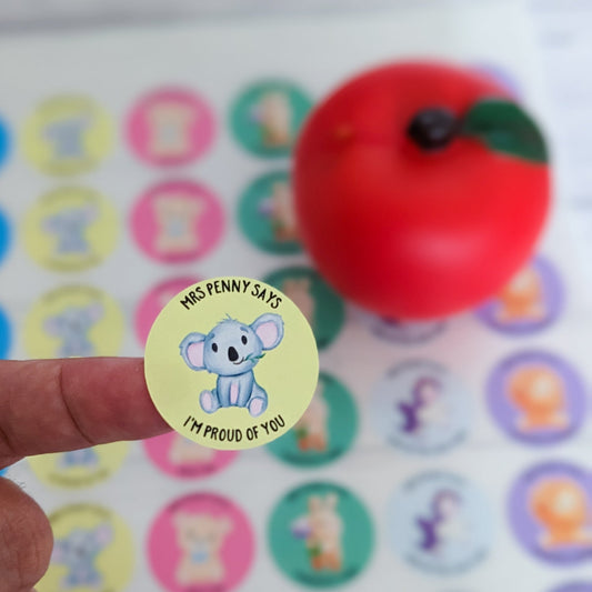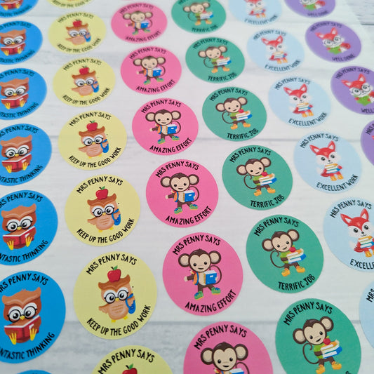 Personalised Teacher Stickers, Owl, Fox, Monkey - Set of 48 Stickers