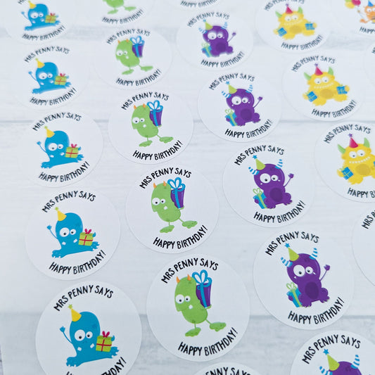 Personalised Monster Happy Birthday Teacher Stickers - Set of 35 Stickers