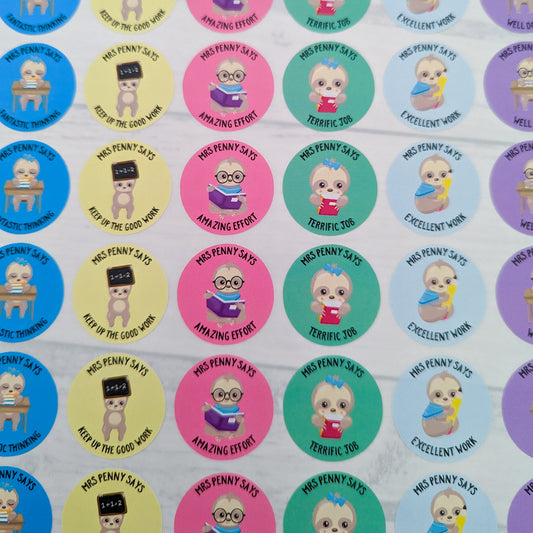 Personalised Teacher Stickers, Sloths - Set of 48 Stickers