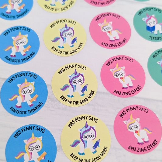 Personalised Teacher Stickers, Unicorns - Set of 48 Stickers