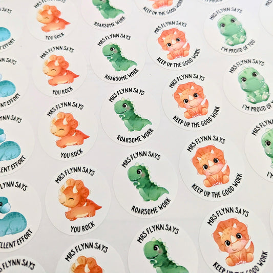 Personalised Dinosaur Teacher Stickers - Set of 48 Stickers